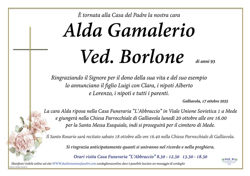 Home page \ I necrologi \ Alda Valentina Gamalerio