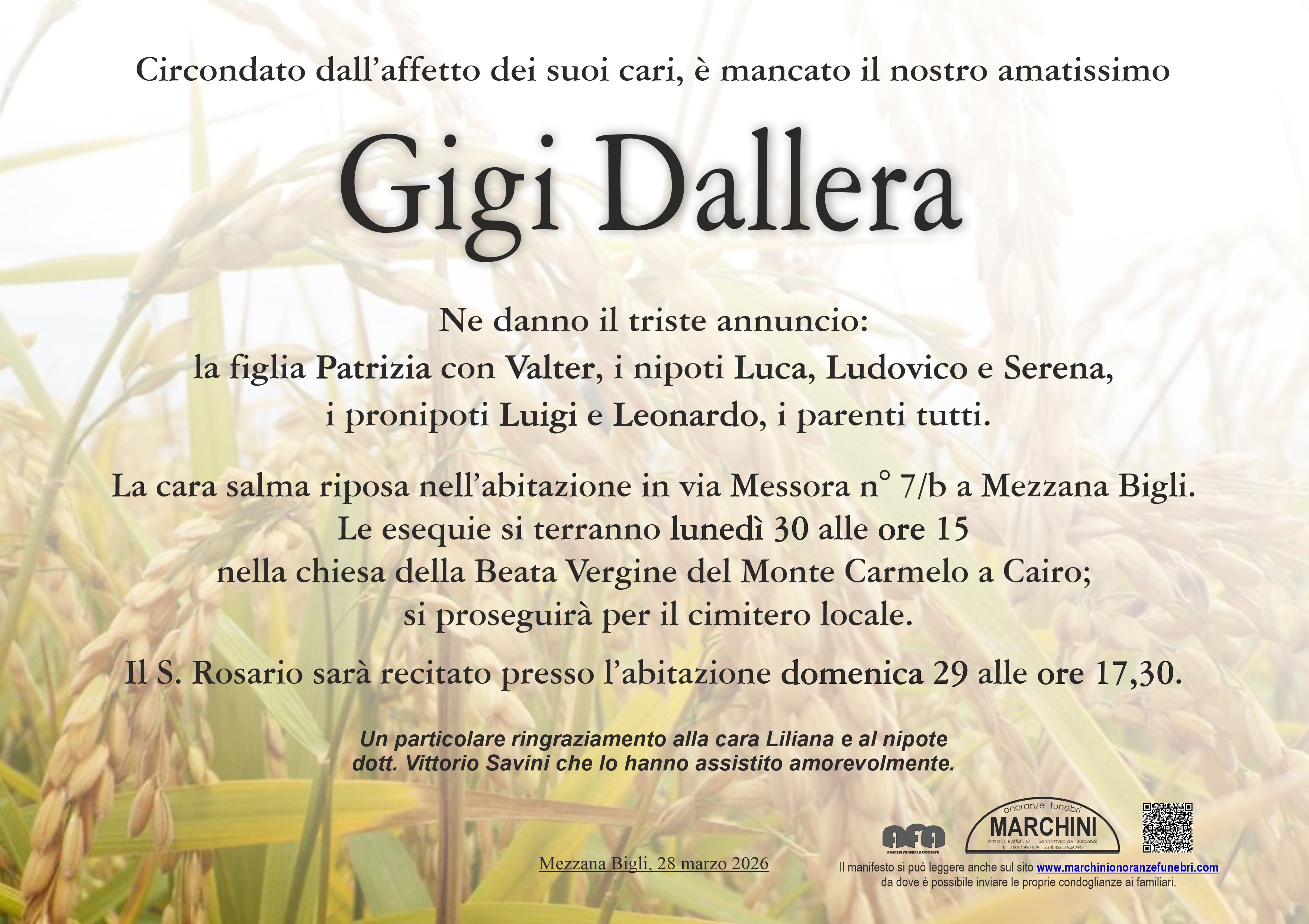 Ci stringiamo a Patrizia e a tutta la famiglia per la perdita del geom. Dallera e porgiamo le più sentite condoglianze. Marilena e Pierluigi
