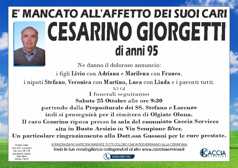 Home page \ I necrologi \ CESARINO GIORGETTI