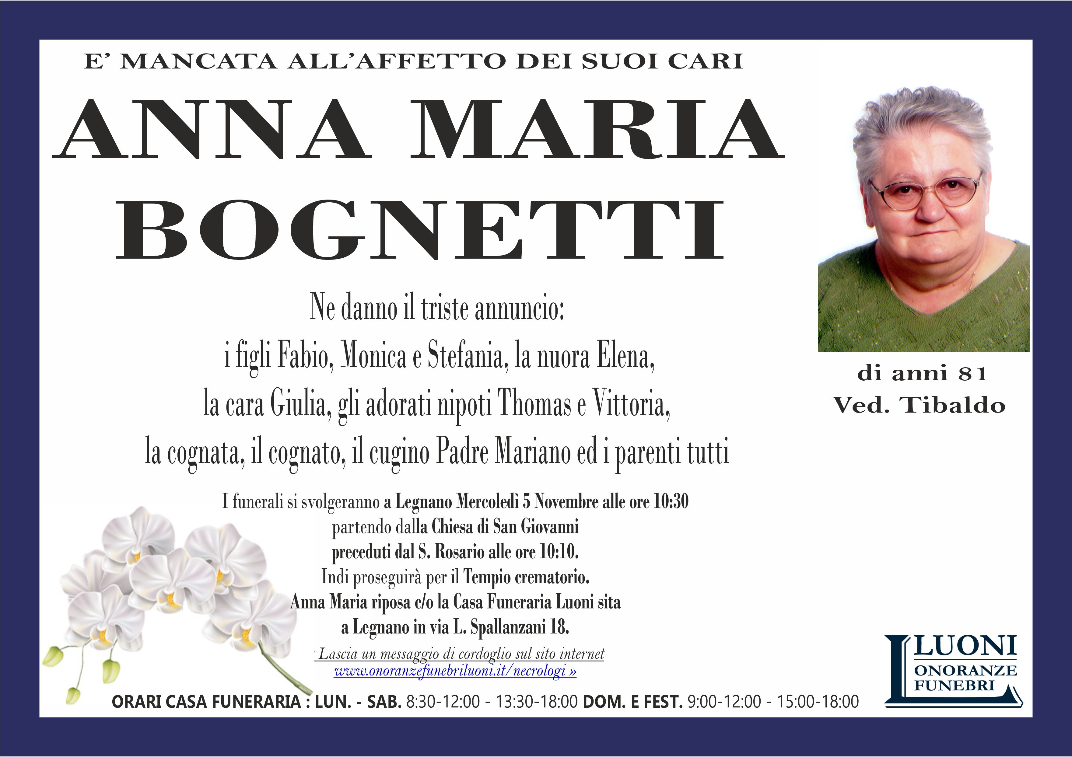 Home page \ I necrologi \ ANNA MARIA BOGNETTI