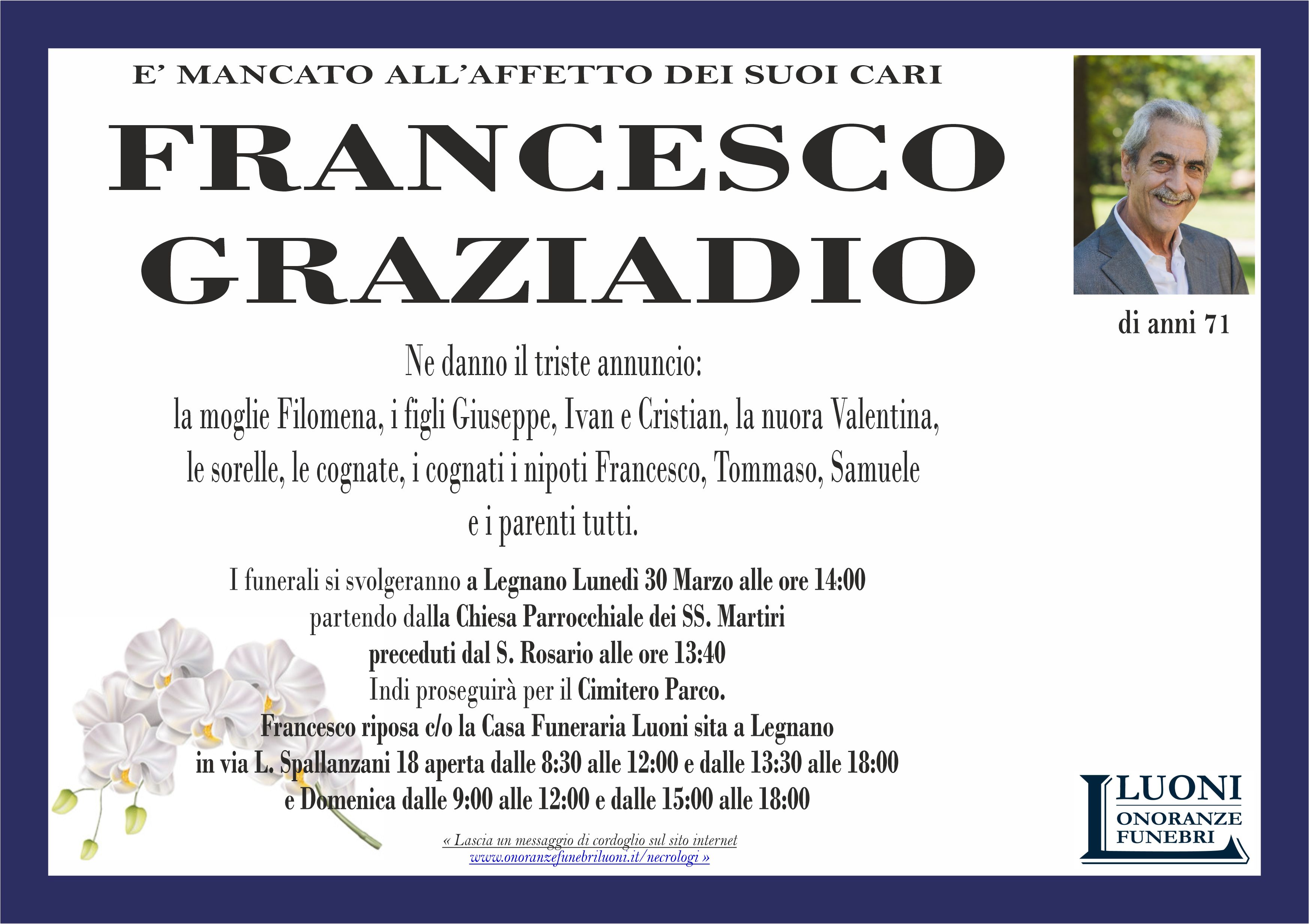 Home page \ I necrologi \ FRANCESCO GRAZIADIO