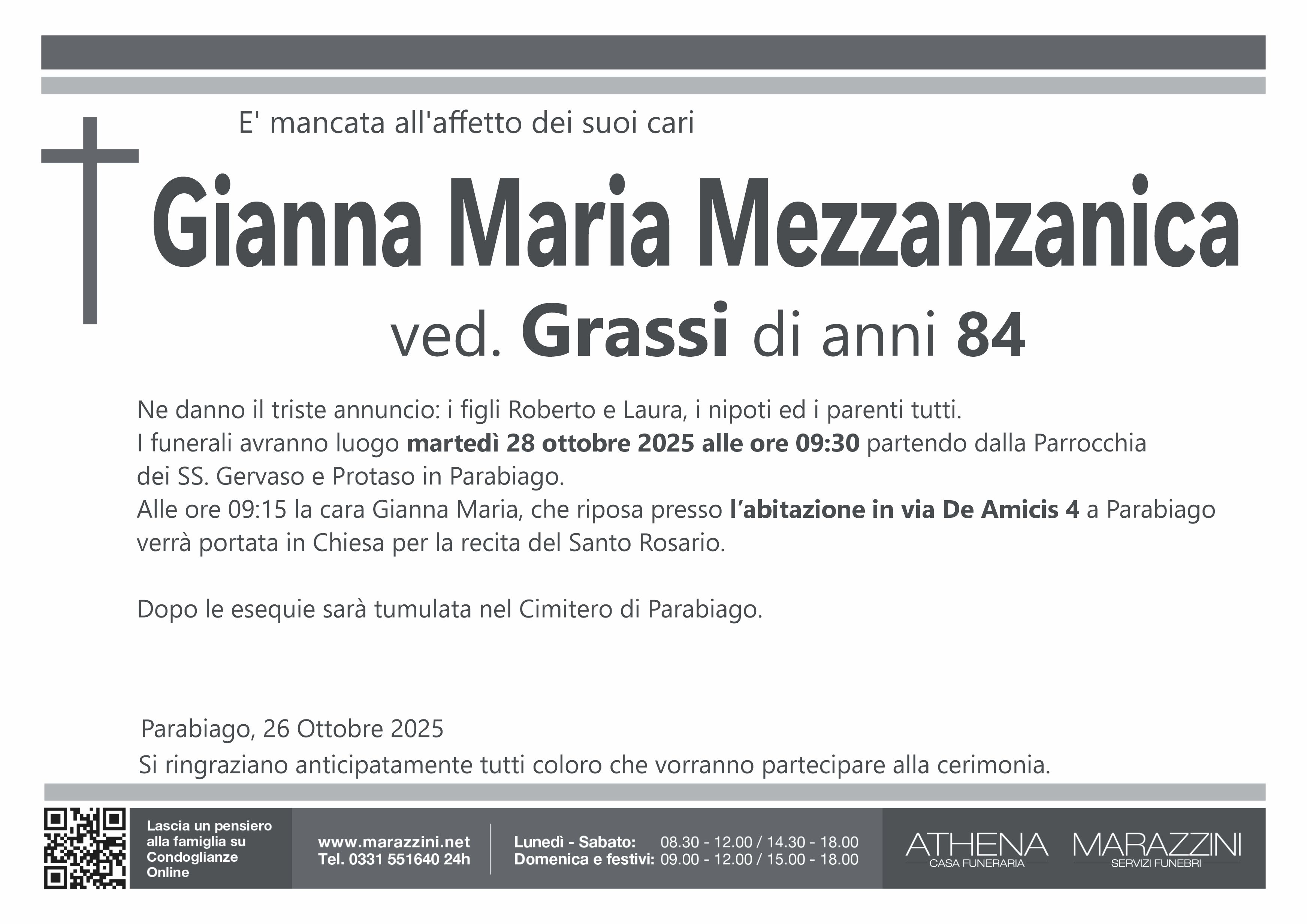Home page \ I necrologi \ GIANNA MARIA MEZZANZANICA