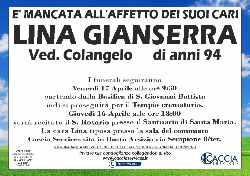 Con profonda tristezza partecipiamo al dolore del figlio Lello e della famiglia per la scomparsa della signora Lina.abbiamo avuto il privilegio di conoscere da molti anni, la ricordiamo sempre come persona generosa, dal cuore grande e profondamente dedita ai suoi figli, donando un amore immenso. il suo ricordo resterà vivo in tutti noi, ci stringiamo con affetto al dolore della famiglia, esprimendo le nostre sentite condoglianze.
