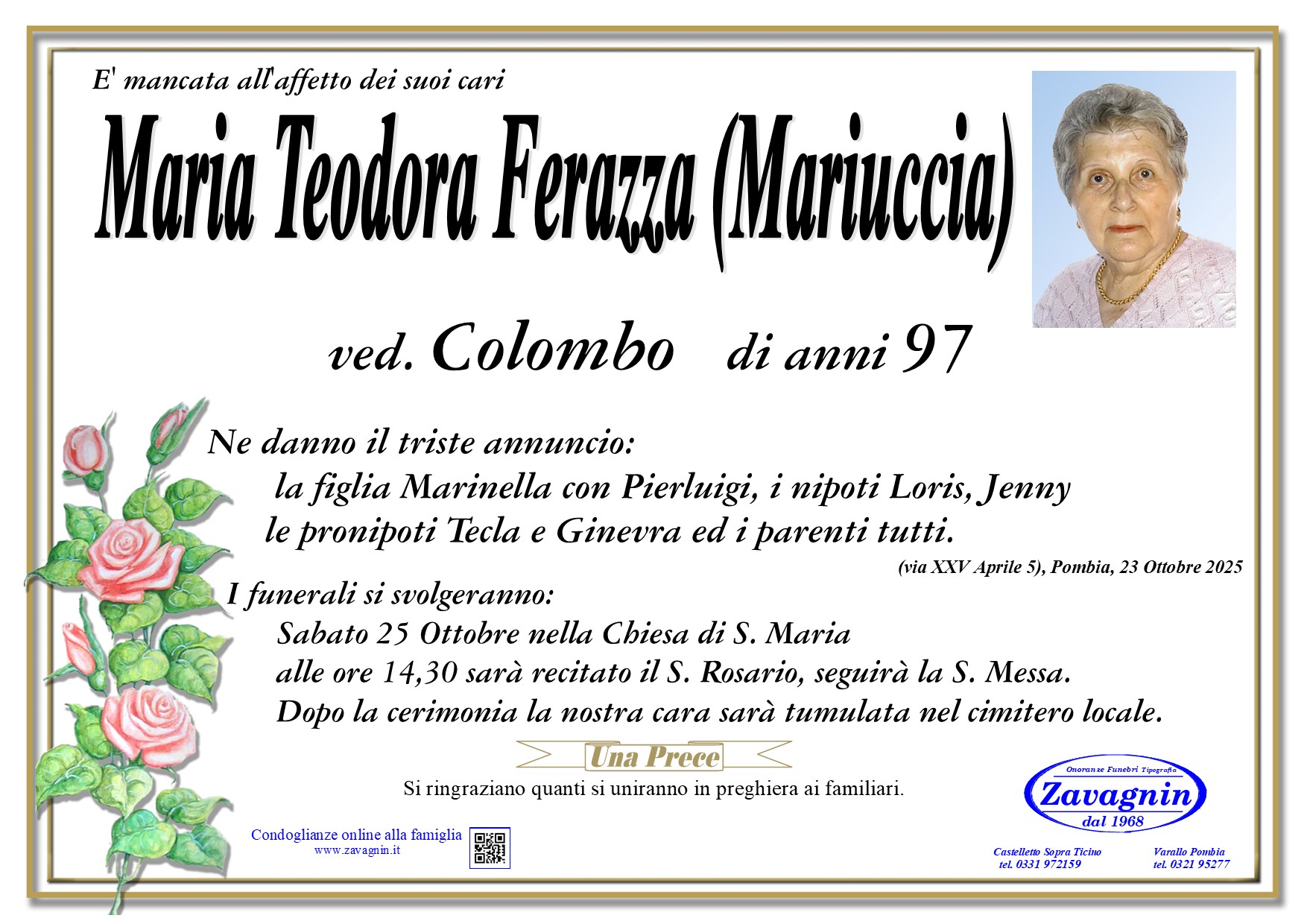 Home page \ I necrologi \ MARIA TEODORA FERAZZA