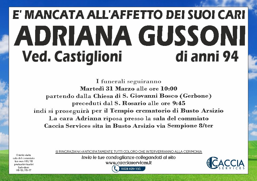 Home page \ I necrologi \ ADRIANA GUSSONI